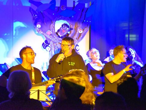 Ein besonderes Highlight war an beiden Tagen das inklusive Musical „Das ganze Jahr Ärger“. Eine Kooperation mit der „KJF Fachschule für Heilerziehungspflege“ aus Dürrlauingen. Deren Schüler*innen und betreute Mitarbeitende der Lebenshilfe zeigten schauspielerisch und musikalisch beeindruckende Leistungen. Unterstützt wurden sie von der Band „Musch‘t du Habba“, die mit musikalischem Know-how, Ausrüstung und zusätzlicher Bühnenbesetzung wesentlich zum Erfolg beitrug.
